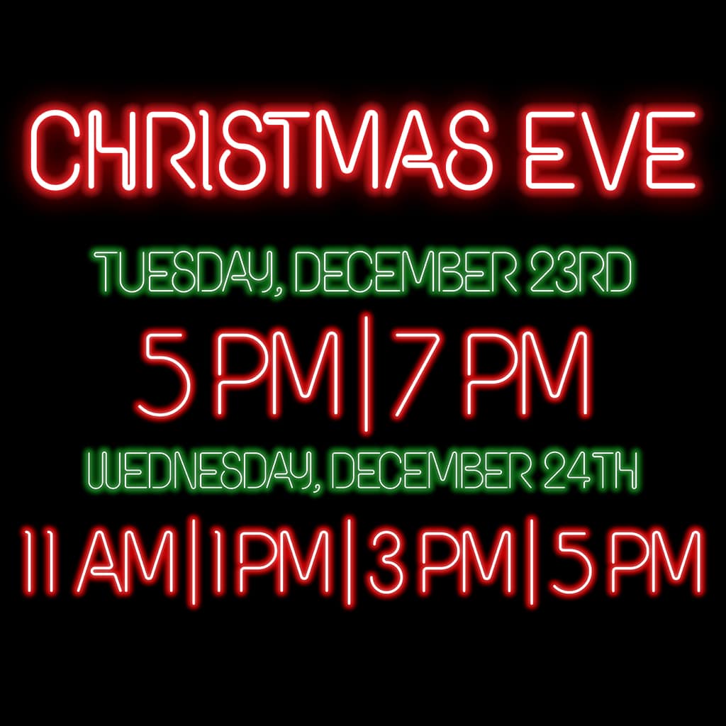 Wednesday, December 24th | 11:00AM, 1:00PM, 3:00PM & 5:00PM